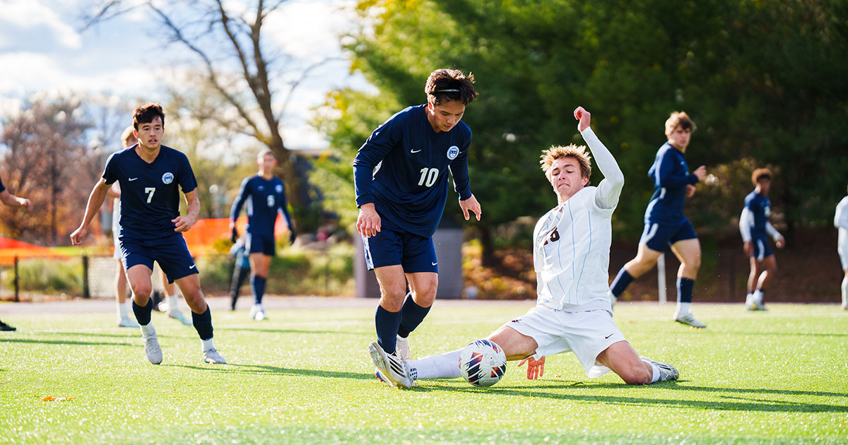 Brandeis men’s soccer caps strong season in double-OT thriller against Tufts